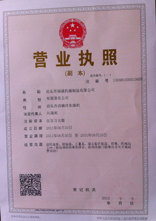 泊頭市瑞誠機械制造有限公司位于我國聞名的鑄造之鄉(xiāng)河北省泊頭市河?xùn)|南工業(yè)區(qū),我公司設(shè)備齊全,制造經(jīng)驗豐富,具有雄厚的技術(shù)實力,順應(yīng)現(xiàn)代化市場之所需,注重技術(shù)產(chǎn)品的科研和開發(fā),使產(chǎn)品的種類不斷增加,質(zhì)量合格率不斷上升,我公司已成為生產(chǎn)齒輪油泵等產(chǎn)品的規(guī)模化企業(yè).